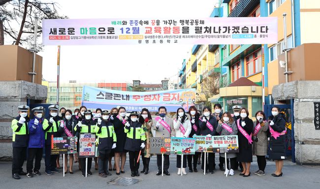 이날 캠페인에는 녹색어머니회, 모범운전자회, 광명초등학교 학부모 등이 함께 참여했다.