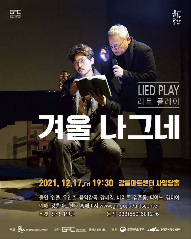강릉아트센터는 17일(금) 오후 7시 30분 사임당홀에서‘리트플레이(Lied Play)’로 재탄생한 슈베르트의‘겨울나그네’공연을 개최한다.