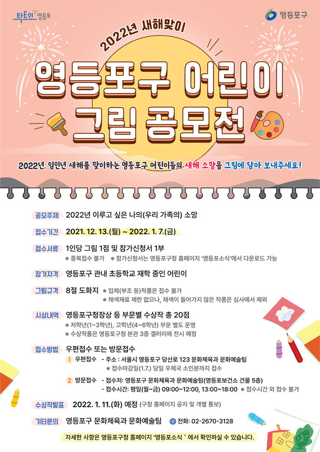 영등포구가 오는 1월 7일까지 ‘2022년 새해맞이 어린이 그림 공모전’을 개최한다고 밝혔다.