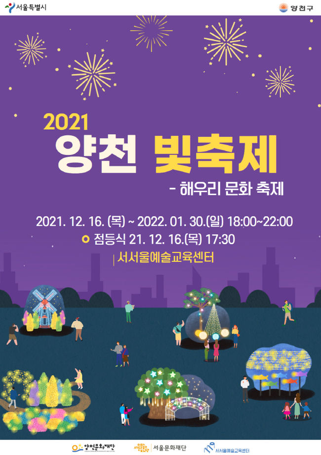‘2021 양천 빛축제’는 양천구의 대표 마스코트 ‘해우리’와 함께하는 양천구 대표 축제인 ‘해우리 문화축제’의 일환으로, 올해는 코로나19의 확산 방지를 위해 한지 조형물 과 조명 작품을 감상할 수 있는 전시형 축제가 열린다.