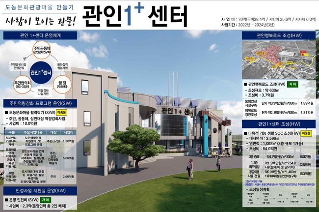 성남시 수진1동은 수진1 재개발정비구역 내 복합용지를 활용한 주거재생특화형 뉴딜사업으로 공동이용시설‧공영주차장‧공공임대상가‧일자리연계형 지원주택(120호) 등이 포함된 복합시설을, 포천시 관인면은 구(舊) 면민회관을 리모델링한 다목적기능 생활사회기반시설(SOC) 조성과 주민공동체 육성 등을 통한 지역 활력 되찾기 사업 방안을 각각 제시했다. 선정된 5곳은 향후 3~7년간 총 630억원의 국비를 연차별로 지원받는다.