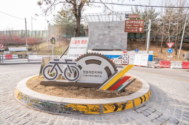 이에 구는 천호자전거거리의 인지성과 상징성을 높여 브랜드를 강화하고 거리를 좀 더 활성화하기 위해 자전거를 테마로 한 특색있는 경관을 조성했다.