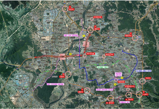 제2순환도로와 무진대로 나들목(IC)에 집중되는 교통량으로 인해 발생하는 혼잡을 최소화하기 위해 진출입로 개선도 조속히 추진한다. 특히, 무진대로 유덕1교차로의 시청에서 운수IC 방향 진입로와 운수IC에서 시청 방향 진출로를 1차로에서 2차로로 확장하는 공사를 내년 2월까지 마무리할 예정이다.
