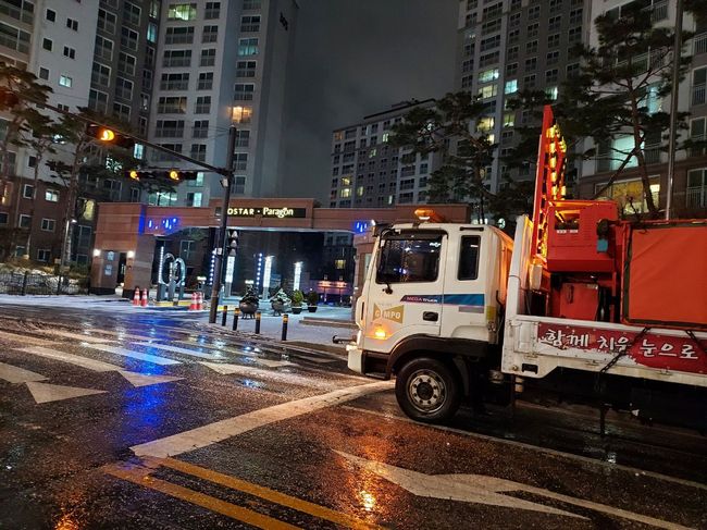 정하영 시장은 눈이 내리자마자 직접 도로별로 로드체킹을 한 뒤 현장 직원과 민간 제설차량 운전자들을 격려하며 꼼꼼한 제설작업을 주문했다.
