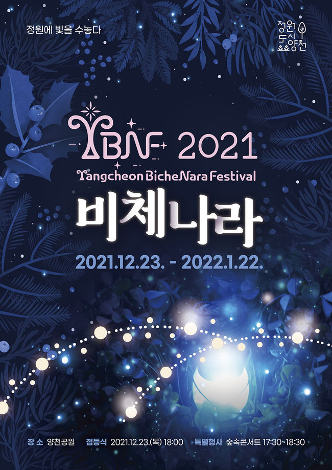 구는 공원 겨울철 테마행사로 YBNF(양천 비체나라 페스티발)라는 이름의 빛축제를 올해 처음 준비했다. 앞으로도 파리공원, 안양천 등 주민이 많이 찾는 공원에서 매년 개최함으로써 양천구만의 대표적인 겨울정원 빛축제로 브랜딩할 계획이다.