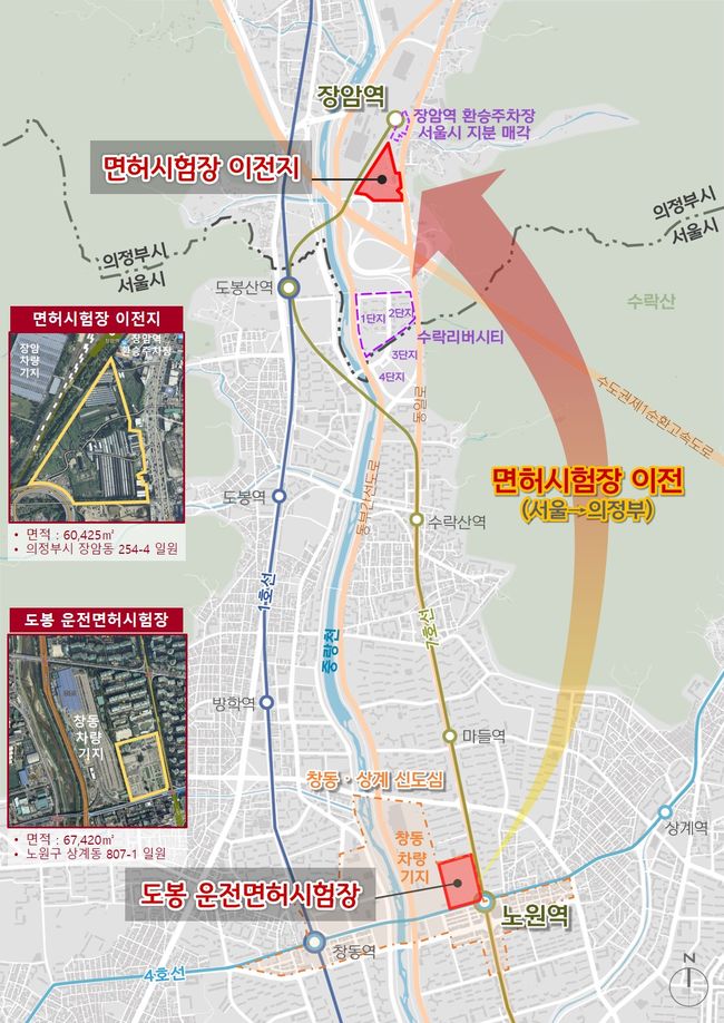 시와 구는 도봉 운전면허시험장이 이전되는 의정부시 장암동 254-4 일원 인근에는 주민 편익시설이 조성되도록 의정부시와 협의해 500억원을 지원한다. 또한 시가 보유한 의정부시 장암역 환승주차장 지분을 의정부시에 매각해 환승주차장을 개발할 수 있도록 협력하기로 했다. 수락리버시티 1‧2단지의 행정구역 조정도 원활하게 이뤄지도록 관련법 등에 따라 상호 협력한다.