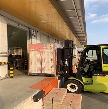 인도네시아 수출을 위해 패킹된 딸기가 인천공항으로 가는 수송차량에 선적되고 있다.
