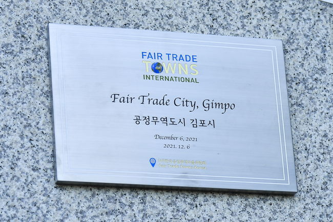시는 지난 22일 정하영 김포시장, 신명순 김포시의회 의장을 비롯하여 김포시 공정무역위원회 위원 등이 참석한 가운데 공정무역도시 인증을 기념하여 현판 제막식을 가졌다.