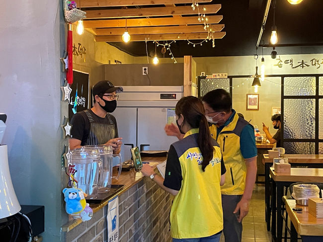 여수시가 `긴급 이동 멈춤 주간`인 지난 7월 위생업소를 대상으로 특별점검을 실시하고 있다.