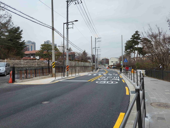 기존 도로 625m 구간의 도로폭을 8m에서 12m로 확장하고 도로 위 차선을 재도색하고, 보도와 차도도 재포장했다.