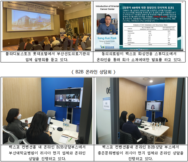 조유장 부산시 마이스산업국장은 “중증질환 치료, 건강검진 등 부산지역 특화 의료기술의 집중 홍보를 통해 코로나 이후 부산 해외환자 유치의 가장 중요한 지역인 러시아 의료관광 시장을 선점하여 부산의료기술 수출을 확대하는데 노력하겠다”라고 전했다.