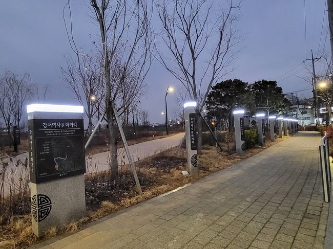 먼저 마곡지구에서 이어지는 양천로47길 초입에 설치된 ‘강서 역사문화 거리’임을 알리는 상징 조형물이 지나가는 이들의 시선을 사로잡는다.