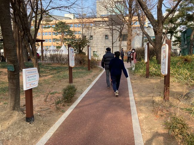 공원 입구부터 산책로를 따라 곳곳에 설치된 안내판에는 치매 예방 수칙과 치매 조기검진의 중요성을 알리기 위한 내용들이 담겼다. 치매 예방에 좋은 운동인 걷기 활동을 하며 치매에 대한 각종 유용한 정보들을 쉽게 접할 수 있어 구민들로부터 좋은 반응을 얻고 있다.