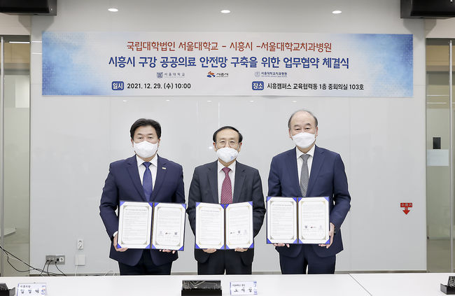 시흥시는 지난 29일 서울대학교 시흥캠퍼스 교육협력동에서 서울대학교, 서울대학교치과병원과 함께 ‘시흥시 구강 공공의료 안전망 구축을 위한 협약`을 체결했다.
