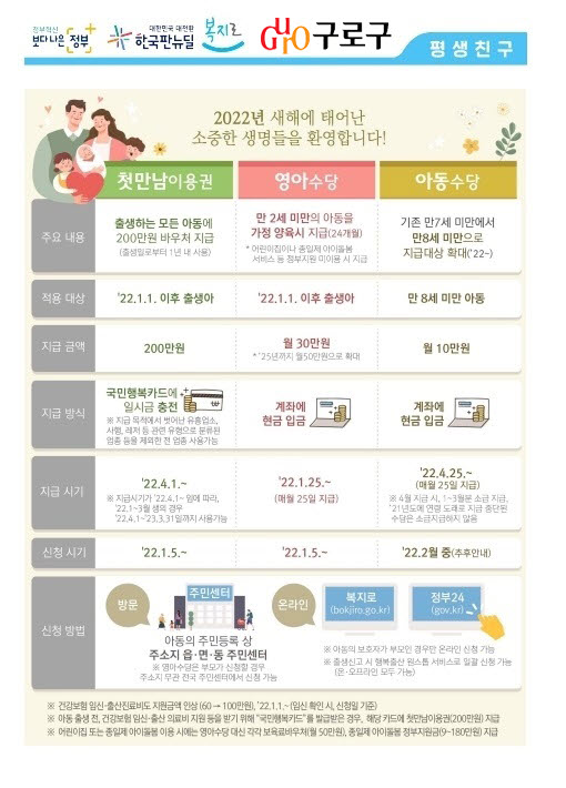 구로구가 아이키우기 좋은 구로로 도약하기 위해 2022년 시작‧개편되는 지원 사업들을 펼친다.