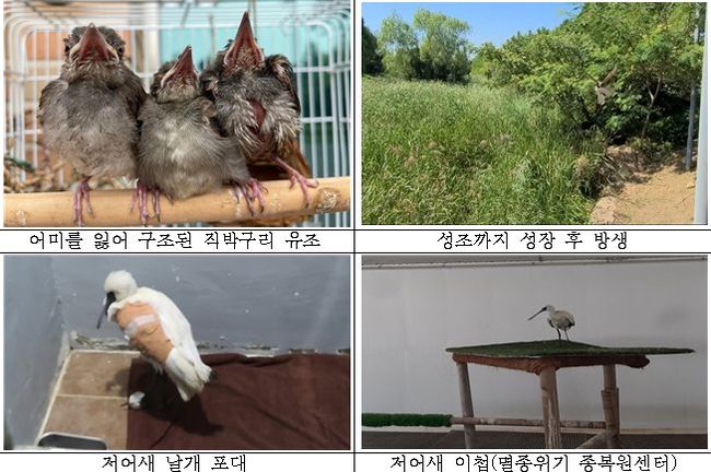그동안 구조관리센터에서 치료한 야생동물은 조류 117종 1,259마리, 포유류 9종 366마리 등 총 136종 1,694마리였으며, 특히 저어새 등 국내 멸종위기 야생동물과 천연기념물 460마리가 포함돼 있고 이중 266마리는 무사히 자연으로 돌아갔다.