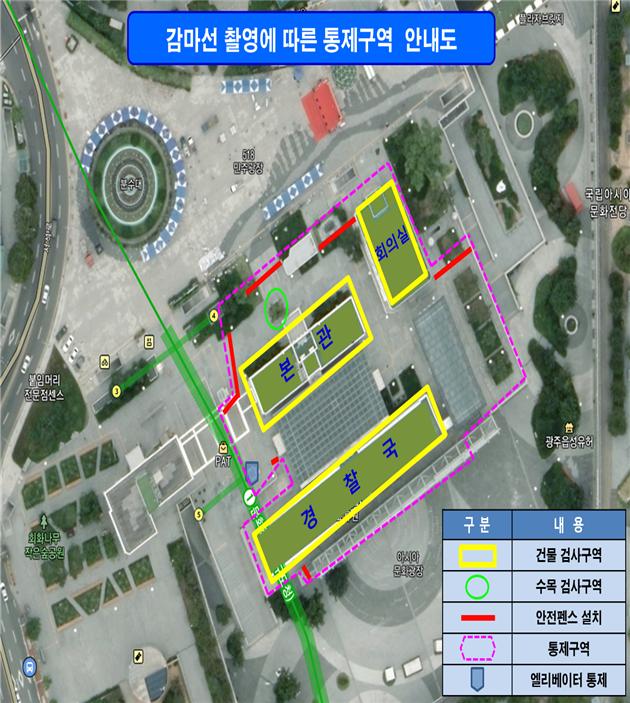 옛 전남도청 감마선 촬영에 따른 통제구역 안내도 (자료=문화체육관광부)