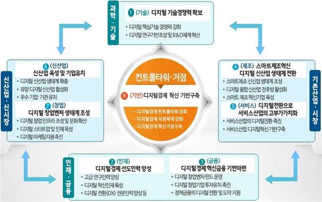 또한, 융합대학원 설립, 재직자 신기술 현장훈련 지원 등으로 디지털경제를 선도할 혁신적이고 창의성이 풍부한 인재를 매년 2천 명 양성하며, 디지털 창업벤처 펀드를 확대 운영하고 디지털 창업기업 투자를 적극 유치하는 등 디지털 신기술 창업에도 1조 5천억 원을 투자한다.