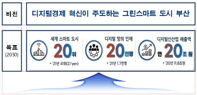 부산 디지털경제 혁신전략 2030 (2030년까지 세계 스마트 도시 20위, 창의인재 양성 2만명, 신산업 매출 연 20조원 달성 추진)