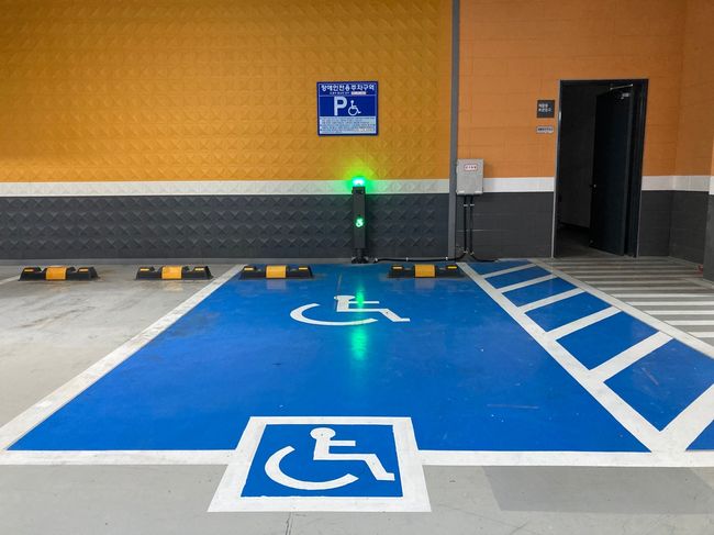장애인전용주차구역에 불법으로 주차하면 경고음이 울리고, 차량이동 없이 5분이 지나면 과태료가 자동으로 부과되는 단속시스템이 운영된다.