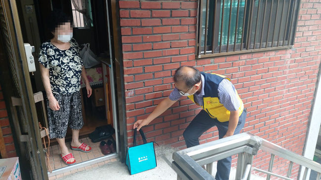 독거어르신 가정에 도시락 배달(식사지원 서비스)을 하는 모습