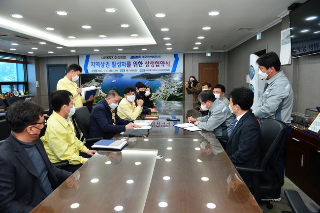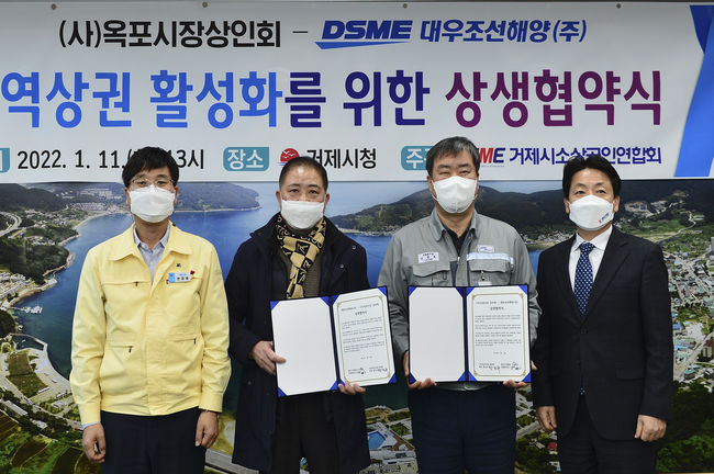 코로나 장기화로 인해 침체된 옥포시장(국제,중앙)의 활성화를 위해 대우조선해양과 옥포시장상인회 간의 상생 협약식을 지난 11일 거제시청에서 가졌다.