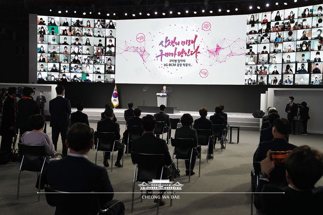 지난 2019년 7월 상생형 구미일자리 투자 협약식에 참석한 데 이어, 이번 LG BCM 양극재 공장 착공식에 참석한 문재인 대통령은 축사를 통해 “구미형 일자리를 통해 대한민국이 배터리 강국으로 도약할 것”이라고 말해 그 의미를 더했다.