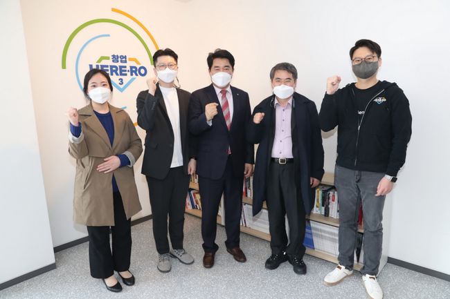 2021.3. 창업 HERE-RO 3 시설 방문한 박준희 구청장(가운데)