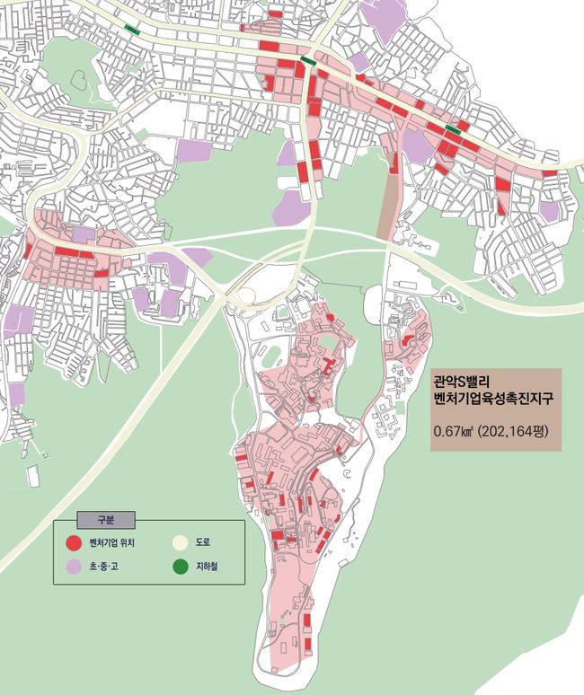 이번에 지정된 ‘관악S밸리 벤처기업육성촉진지구’는 낙성대동, 대학동 일대 0.67㎢로 크게 낙성벤처밸리지구, 신림창업밸리지구, 서울대지구로 나뉜다.