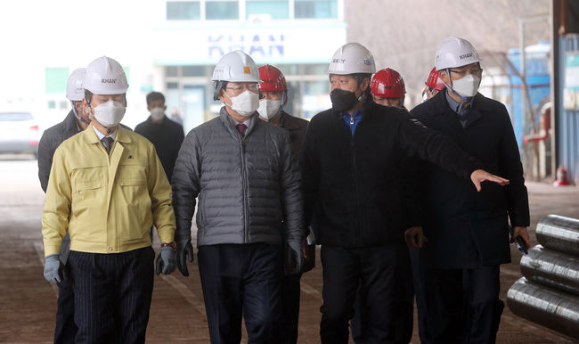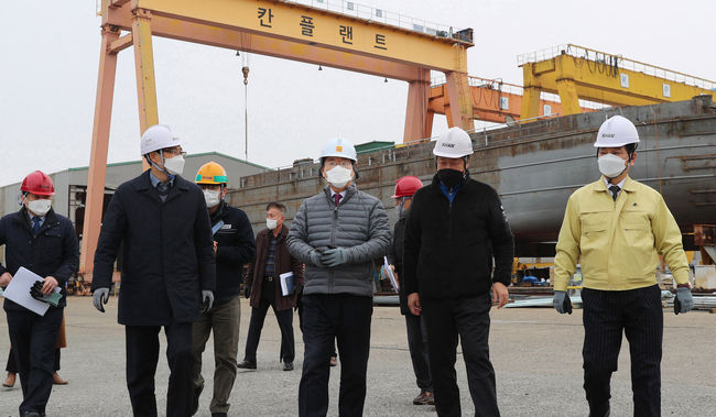 전라남도는 17일 코로나19로 어려운 여건에도 일자리 창출과 고용안정에 최선을 다한 영암 대불산단의 칸플랜트주식회사를 방문해 기업 현황을 청취하고 직원을 격려했다.