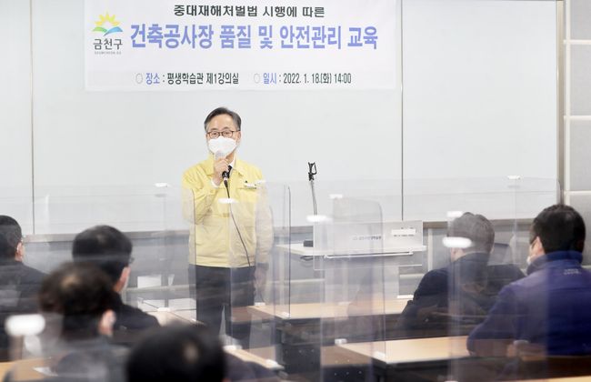금천구는 1월 18일(화) 오후 2시 구청 평생학습관에서 대형공사장 현장소장 및 감리단장 20명을 대상으로 ‘건축공사장 품질 및 안전관리 교육’을 실시했다.