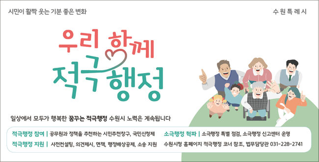 조청식 수원시 제1부시장은 “급변하는 행정환경 변화에 대응해 신속하고 과감한 적극행정을 실천할 것”이라며 “시민이 확실하게 체감할 수 있는 적극행정이 이뤄지도록 모든 노력을 다하겠다”고 말했다.