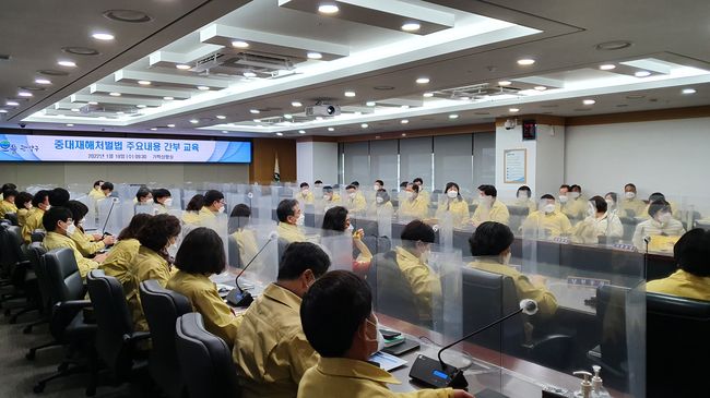 19일에는 중대재해 처벌법 주요 내용에 대한 전 부서장과 동장 교육을 실시했다. ▲안전보건관리체계 구축 및 관리자의 역할 ▲관악구 산재현황 및 주요 재해사례 ▲지방자치단체 산재예방매뉴얼 등 안전한 근무 환경 조성을 위한 관리자들의 관심과 노력의 중요성을 강조하며 법률 시행 전 사전 준비에 총력을 기울이고 있다.