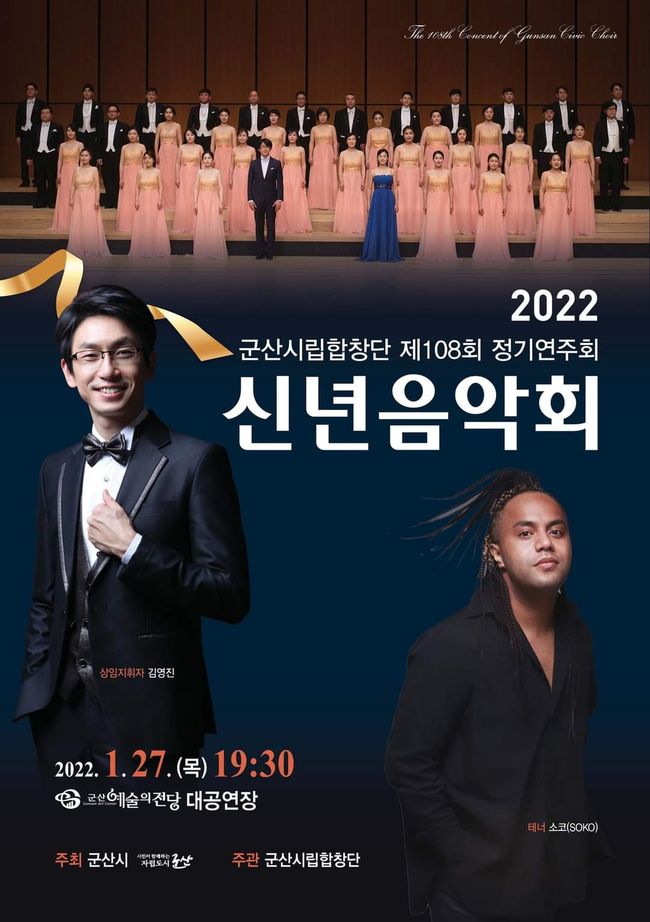군산시 예술의전당은 2022년 임인년 새해를 맞아 군산시립합창단이 온 가족과 함께 행복하고 멋진 추억이 될 제108회 정기연주회 ‘신년 음악회’를 개최한다고 25일 밝혔다.