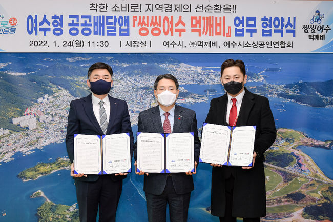 이날 협약식에는 권오봉 여수시장, 김도형 ㈜먹깨비 대표이사, 박기창 여수시소상공인연합회장이 참석해 소상공인 보호와 지역경제 활성화를 위한 협력을 다짐했다.