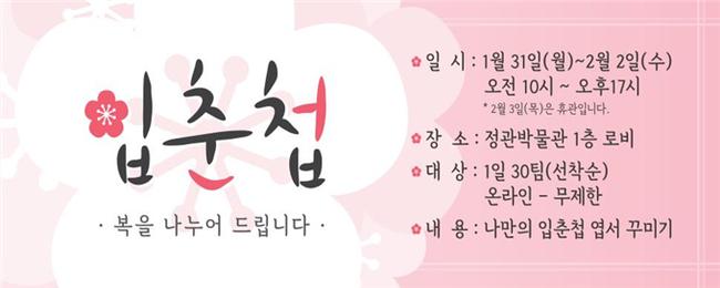 또한, 정관박물관은 입춘(2월 4일(금))을 맞아 입춘 엽서를 제공하는 `입춘첩-복을 나누어 드립니다` 행사도 진행한다.