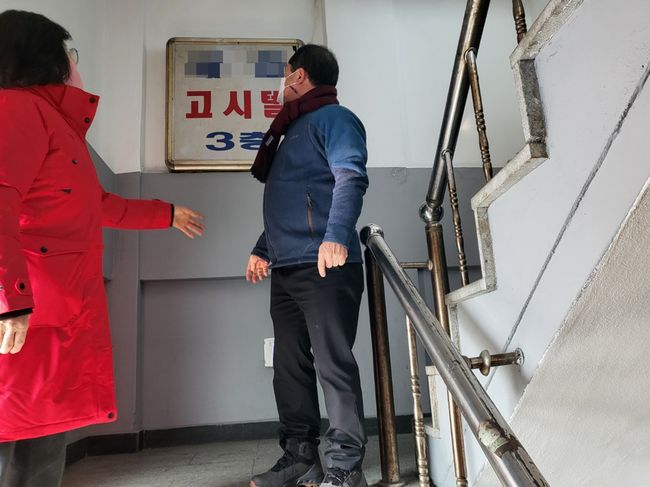 김현광 팔달구청장이 28일 관내 고시원을 점검하고 있다.