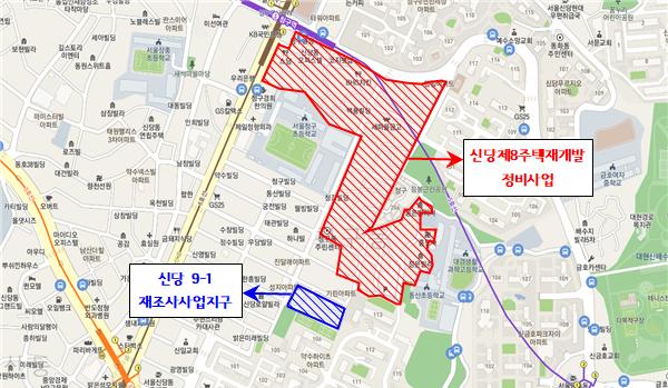 신당 9-1지구 일대는 6.25전쟁 종전 후, 지적도상의 경계와 맞지 않게 지어진 건축물들이 난립해 최근까지도 지적불부합 지역으로 남아있었다. 이로 인해 주민들은 토지의 소유권 행사에 불편함을 겪고, 토지소유자의 동의가 요구되는 토지이용과 개발은 사실상 불가능했다.