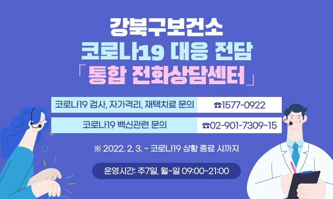 서울 강북구가 코로나19 대응 ‘전담 통합콜센터’를 오는 2월 3일(목)부터 6월 30일(금)까지 운영한다.