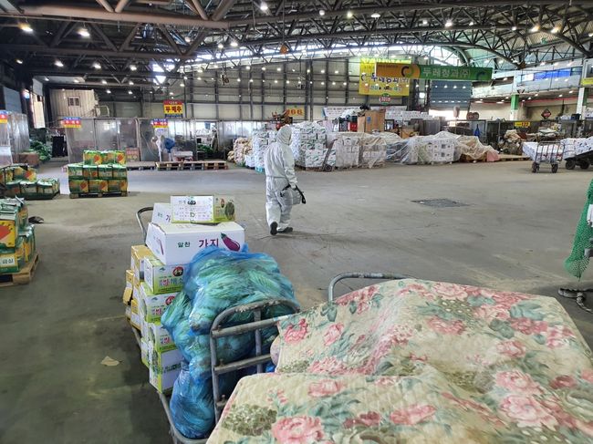 확진자가 발생한 채소동을 비롯한 청과동, 수산동 등 도매시장 전역을 지난 1일부터 3일까지 고강도 집중 방역소독을 실시했으며, 4일부터 농수산물 경매장, 판매장을 모두 정상적으로 운영한다.