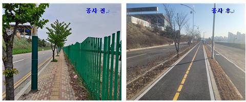 우선, 남동공단 남측 약 600m구간 해안철책 철거부지 활용과 도로변 차단휀스를 철거해 자전거도로와 녹지, 인도를 구분 설치했고, 단절됐던 자전거도로를 연결해 바다조망과 여가활동이 더욱 편리해졌다.