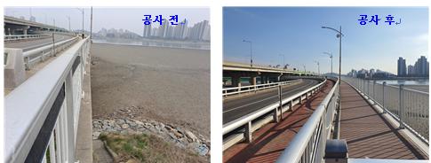 또한 소래해오름공원과 남동공단 남측을 연결하는 아암1교에 연장 400m, 폭 2.0m의 부착식 인도교를 설치해 보행하면서 바다를 조망할 수 있을 뿐 만 아니라, 자전거도로와 인도를 구분 정비하여 이용자들의 안전을 확보했다.