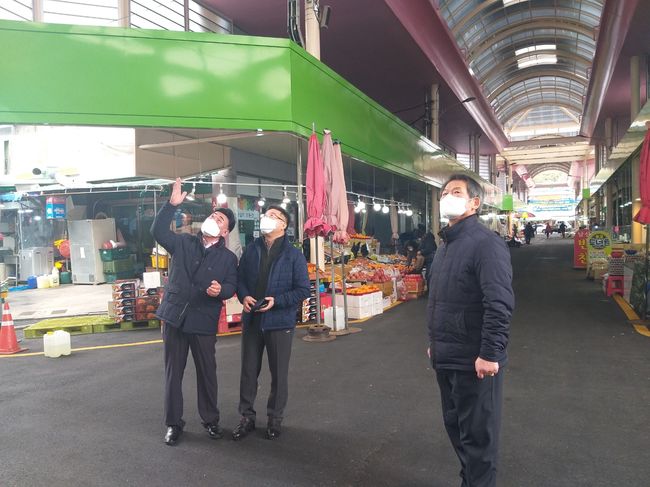 정현섭 경제일자리국장은 아케이드 공사현장을 확인하는 등 사업현안을 챙기는 한편 코로나19 확산으로 가게 운영에 어려움을 겪고 있는 전통시장 소상공인들의 애로사항을 청취했다.
