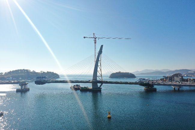 시에 따르면 해상교량은 임시개통을 앞두고 교량 상판과 케이블 연결만 남겨둔 상태이다.