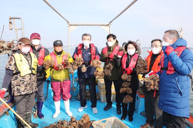 또 2021년도에는 1억 5000만 원의 예산으로 개체굴 종자 52만 마리와 굴 채묘연 2만 4천연, 친환경 부표 750개, PP로프 250롤 등의 친환경 시설과 굴망 및 굴 채취 자동화 장비를 갖춰 연간 300톤의 굴을 생산해 9억 5천만 원의 수익을 올렸다.