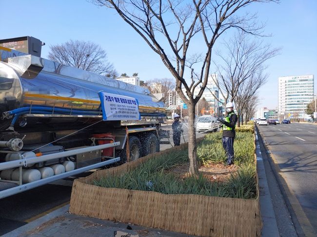 가로수의 잎이 마르거나 말라 죽는 것을 방지하기 위해 살수차를 활용해 물을 주는 관수(灌水) 작업도 한다.