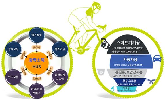 한편, ‘4차 산업혁명시대의 눈’이라고 불리는 광학렌즈는 자동차, 스마트 기기, 통신, 보안감시용, 항공․우주, 의료용 등 다양한 응용분야에 적용되고 있지만, 그동안 카메라 렌즈용 광학소재 산업이 핵심소재·부품 수입 후 가공 조립에 의존하는 산업구조로 국내 광학산업에 대한 가치사슬(기업 활동에서 부가가치가 생성되는 과정) 확립과 고부가가치 선진국형 광학산업으로의 전환이 절실했다.