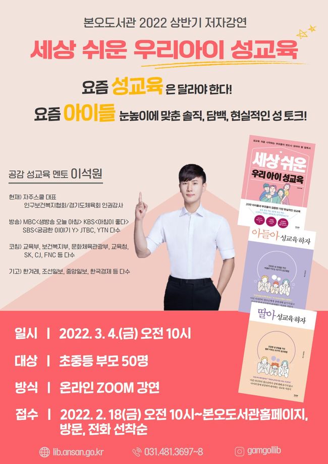 안산시,`세상 쉬운 우리아이 성교육`저자 이석원 성교육 멘토 강연 마련-홍보문