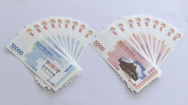 밀양시는 올해 역대 최대 규모인 800억원의 밀양사랑상품권을 발행한다.(사진은 밀양사랑상품권)