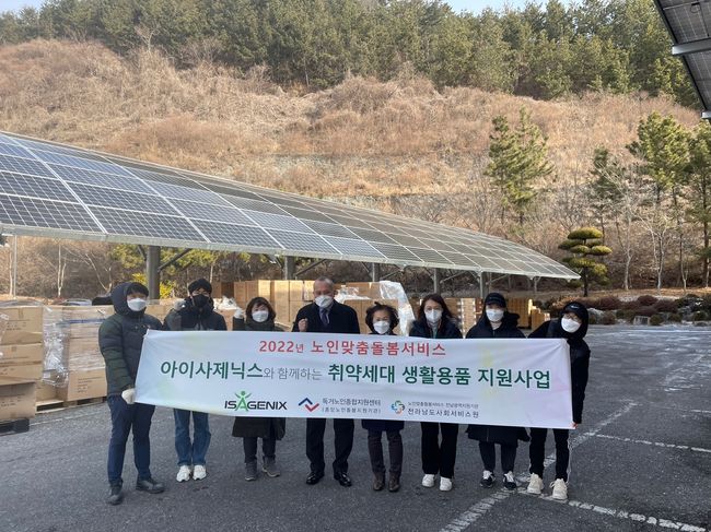 지원 물품은 아이사제닉스가 후원한 건강식품 4종과 생활용품 10종 등 총 1천906박스(54PLT)다. 시군의 노인맞춤돌봄서비스 수행기관은 우선적으로 물품이 필요한 어르신 6천500여 명을 선정하고 생활지원사가 각 가정에 방문해 비대면 방식으로 전달할 예정이다.
